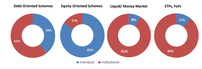 Amfi data reveals that Individual Investors comprise a very small part of the Assets under Management when it comes to Liquid Funds. It would been interesting if we knew the percentage of funds invested by Individuals in Liquid + Ultra Short Term + Short term funds since these not only makeup 80% of the Assets under Management but also aren’t as easily impacted by Interest Rate changes as longer duration funds (Medium Term / Income Funds, Gilt Funds, etc) are.
