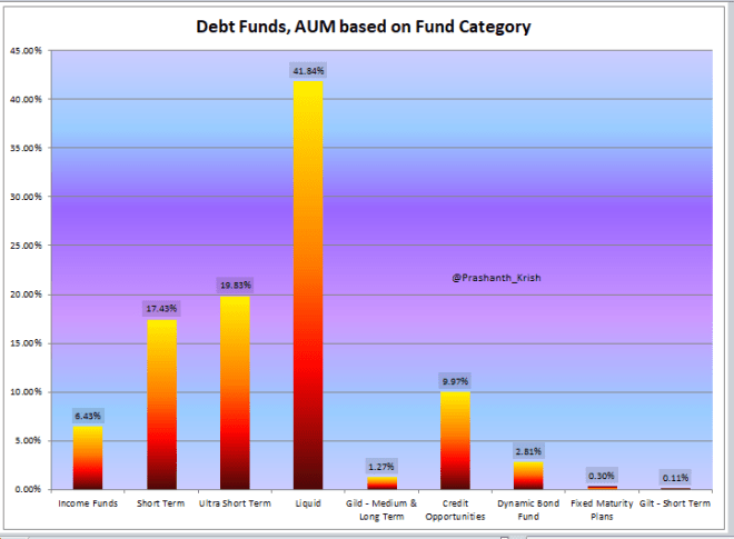 With nearly 42% of total assets under management in Debt funds being in the Liquid category, this static alone makes it very important to understand it’s working. Add Ultra Short Term and Short Term to this, and we have 80% of the total market out there.