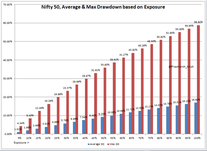 The chart below showcases the average draw-down and maximum draw-down you could experience at various levels of exposure.