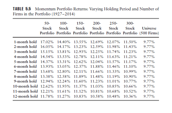 What would be interesting to research is whether buying a portfolio of the best stocks and holding for a short period of time works better. While trends tend to phase out over time, one month holding for the best stock of the past year should give out a better return than holding the same for one year.