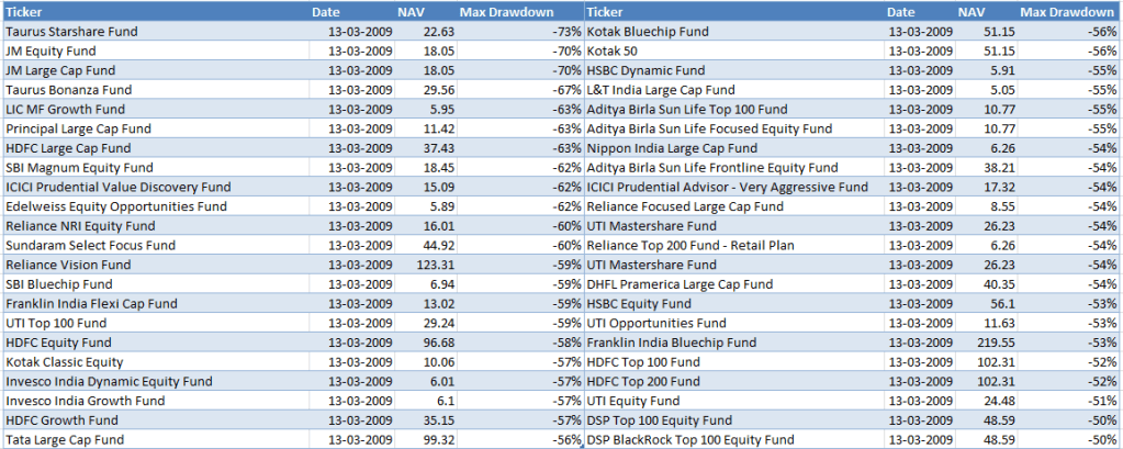 The best fund from the starting point of this chart – DSP Small Cap Fund {SBI Small Cap fund had similar returns for the said period}.