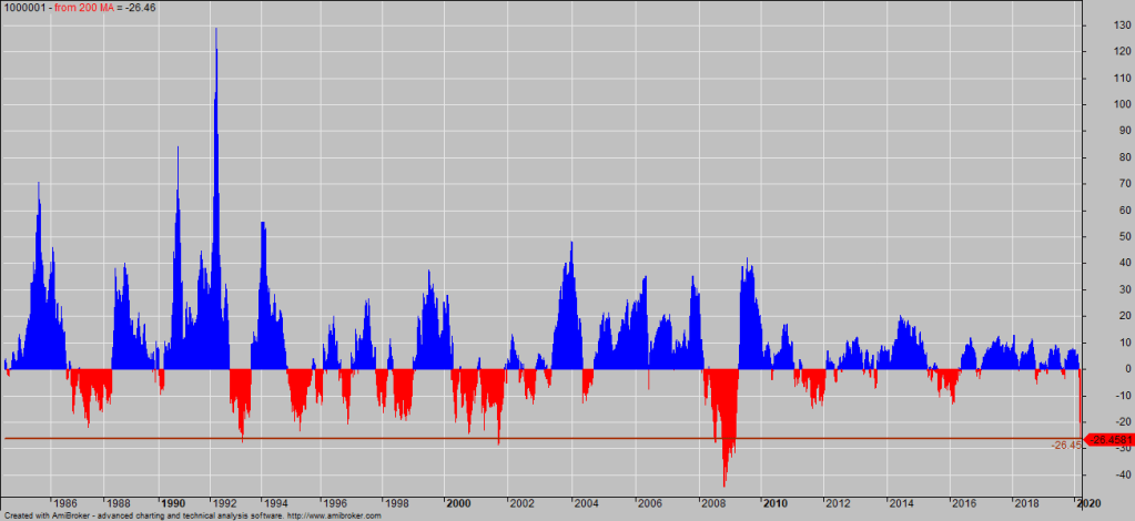 The first 10 years sees some massive outperformance, the next 6 decent outperformance and finally the last 12 not so much. Geometric Average outperformance for the periods