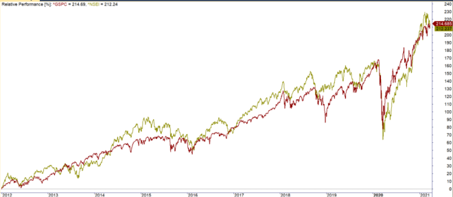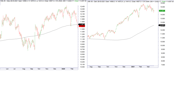 First is Nifty 50. Here is a chart that compares how it was at the beginning of March 2020 vs today
