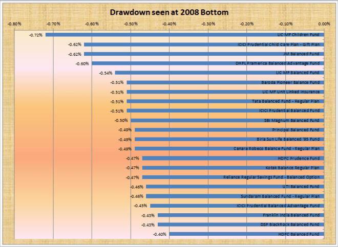 The disadvantage of Balanced funds comes to the fore if and when the markets crack. While we may or may not see a fall similar to the one seen in 2008, its important to see how the funds held up during the 2008 crisis with a much lower Asset Under Management to get a better understanding of the Risks that a Investor is assuming.